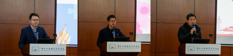 在随后进行的“三全育人”工作交流发言环节,教务处和学生处分别做了课程育人和心理育人方面工作汇报,朱伟、胡平、董艳分别作为优秀思政课教师、优秀班主任和优秀辅导员代表作育人工作的经验交流,从不同角度介绍了自己的育人成效、感悟和思考,党委委员、纪委书记张启富,宣传部部长陈军强,电子信息学院党总支书记张鹏飞作为获奖论文(案例)代表阐释了“三全育人”理论和实践层面的个人研究和探索成果。