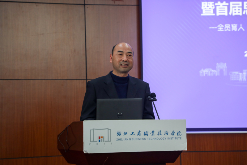 党委书记陈仕俊作题为《深入推进“三全育人”综合改革,多元融通打造学校思政工作亮丽“名片”》的讲话。他指出,此次会议生动而富有成效,各位代表立足自身岗位实际,所作的发言有的感人至深,有的视角新颖,有的发人深省,各具特色、颇有启示。他强调,学校党委高度重视“三全育人”综合改革工作,2020年出台《全面推进“固基铸魂”深化“三全育人”综合改革实施方案》,安排部署10大育人31项指标任务,仅今年3次召开“三全育人”改革项目协调会,今天专题召开“三全育人”综合改革推进会暨思想政治工作研讨会,主题就是总结两年来的育人工作,交流工作经验、谋划重点工作,全面推进创建浙江省“三全育人”典型学校。他代表学校党委提出三点意见:一是全面总结提炼,学校“三全育人”综合改革工作成效明显。这两年,学校党委勇做“开路人”“拓荒者”,扛起综合改革重任,抓牢主力军,从“单”到“全”汇聚全员育人的磅礴力量;弘扬主旋律,从“分”到“合”奏响全过程育人的强音;坚守主阵地,从“点”到“面”形成全方位育人的局面。二是更高标准谋划,持续推进“三全育人”工作融会贯通。“三全育人”牵涉到学校工作的每个方面、每个环节,既需要举全校之力共同推进,又需要明确目标要求,抓住主要矛盾,凸显重点任务。要重点推进课程育人建设,着力完善课程评价机制,提升课程教学质量;推进科研育人与实践育人协同发展,提升科技创新和服务社会能力;推进文化育人与网络育人协同发展,弘扬主旋律,传播正能量;推进心理育人与资助育人协同发展,着力促进学生身心健康发展;进一步抓好服务育人工作,着力提升学生幸福感、获得感;推进管理育人与组织育人协同发展,着力促进学校治理能力提升。三是坚持守正创新,奋力打造新时代“三全育人”工商华章。综合改革不是目的,只是起点,目标是要探索形成“三全育人”长效机制。在接下来的工作中,一要加强组织领导,在“增量扩面”上下功夫;二要聚力内涵发展,在“提质升效”上下功夫;三要聚焦队伍建设,在“健全保障”上下功夫;四要强化协同联动,在“常做常新”上下功夫。他最后强调,过去两年我们改革探路、踏浪前行。面向未来,我们要继续聚焦立德树人,健全长效机制,纵深推进“三全育人”,全面落实“五育并举”,共同绘制“三全育人”的“工笔画”,凝聚起全员全程全方位培育时代新人的强大合力,不断推动学校思想政治工作再上新高地。
