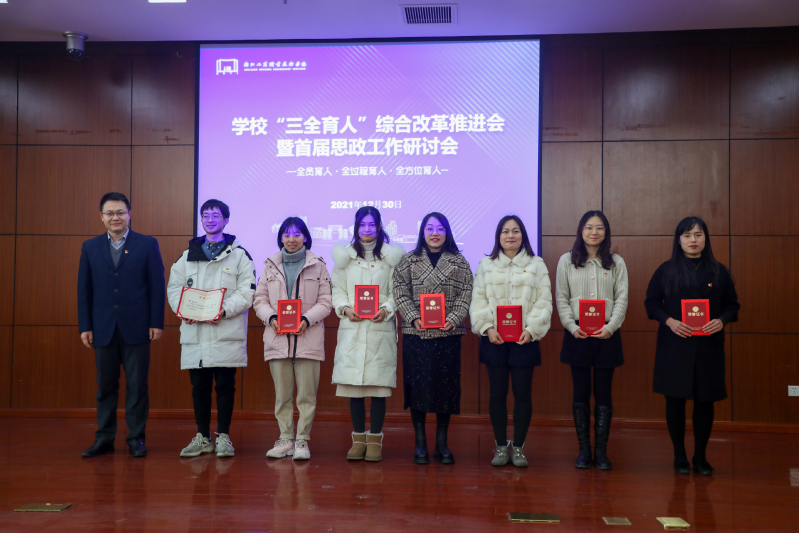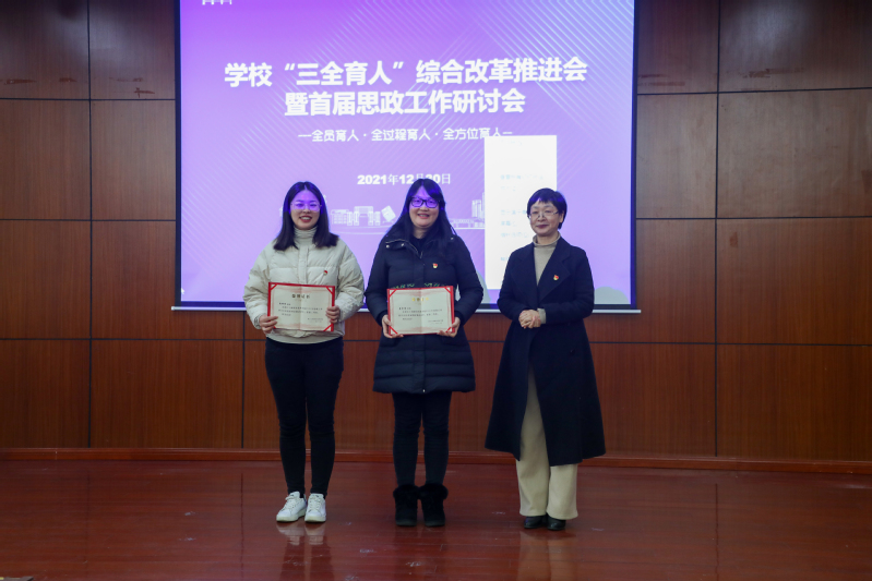 会上,校长周志春宣读首届思政工作研讨会优秀论文(案例)获奖名单,校领导分别为优秀论文(案例)一、二、三等奖获得者颁奖。