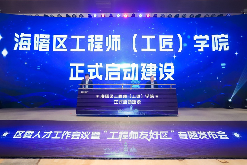 1月11日,海曙区“区委人才工作会议暨工程师友好区专题发布会”在南苑饭店举行,我校与海曙区人力资源和社会保障局合作共建的“海曙区工程师(工匠)学院”作为会议的一项重要议程在会议上正式揭牌。会上,海曙区常务副区长李冠杰和我校党委委员、副校长应晓清共同为“海曙区工程师(工匠)学院”揭牌。