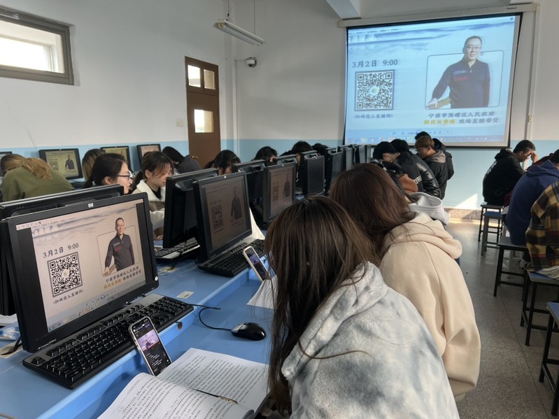 为积极配合办好此次大会,我校高度重视,认真做好各项工作,电子商务专业的学生们还在直播过程中与海曙区副区长黄健进行了积极的互动,并在现场观摩和学习了农产品直播的相关内容。场外,我校电子商务学院还组织了约1500名师生观看了农产品直播,助力本次直播,同时,专业老师也将其作为案例在课堂与学生进行了分享。