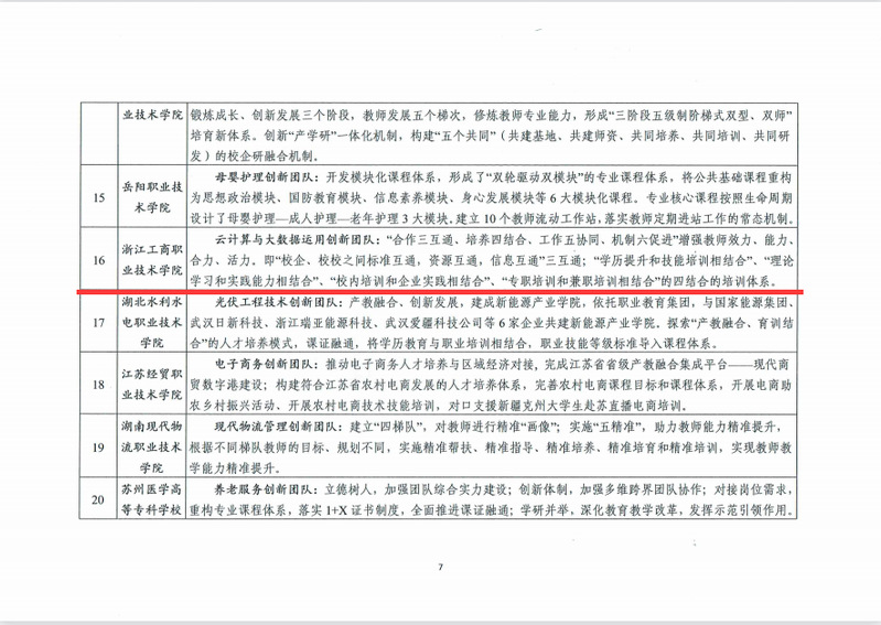 据悉,全国共立项建设360个国家级职教创新团队,本次遴选出30个典型案例。学校将以此为契机,持续加强国家级职教创新团队建设,发挥其在梯队性教师队伍建设中的示范引领作用,推动我校教师队伍建设高质量发展。