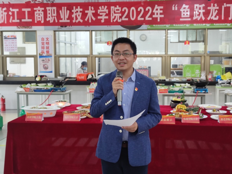 4月27日,2022年“鱼跃龙门”教职工特色厨艺大赛在宁海校区成功举办。校党委委员、工会主席谢骏,工会常务副主席韩包海,工会专职工作督察员王国芬,机电工程学院院长郑子军,机电工程学院党总支书记汪建武,教职工体艺协会总会长崔世君,宁波市餐饮协会副会长娄文照,本部教工餐厅厨师长刘军辉出席活动。大赛由校工会主办、机电工程学院分工会承办、宁波京扬餐饮管理有限公司协办,来自学校8个分工会的24名选手参加了比赛。