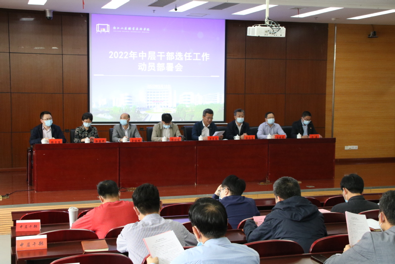 5月18日下午,学校召开中层干部选任工作动员部署会,对2022年中层干部选任工作进行动员部署。学校领导班子成员、全体中层干部、高级职称教师代表、党代会代表、教代会代表、民主党派代表及其他教职工代表出席会议。校长、党委副书记周志春主持会议。