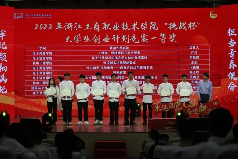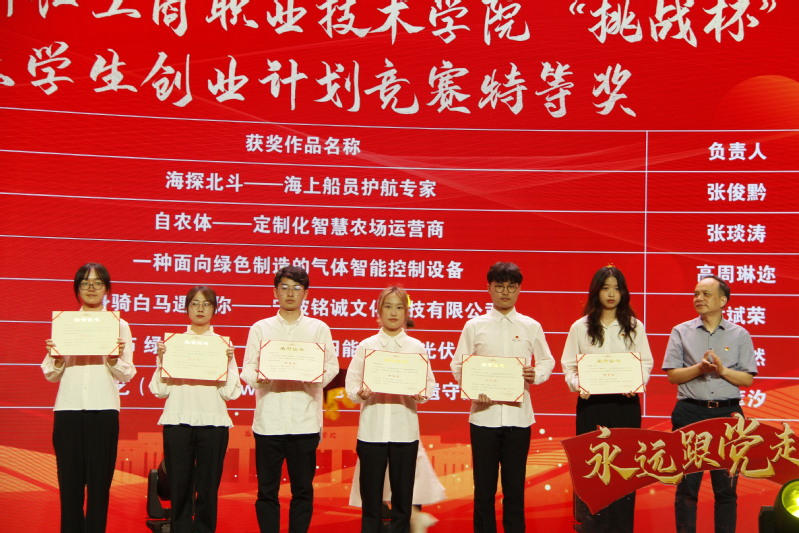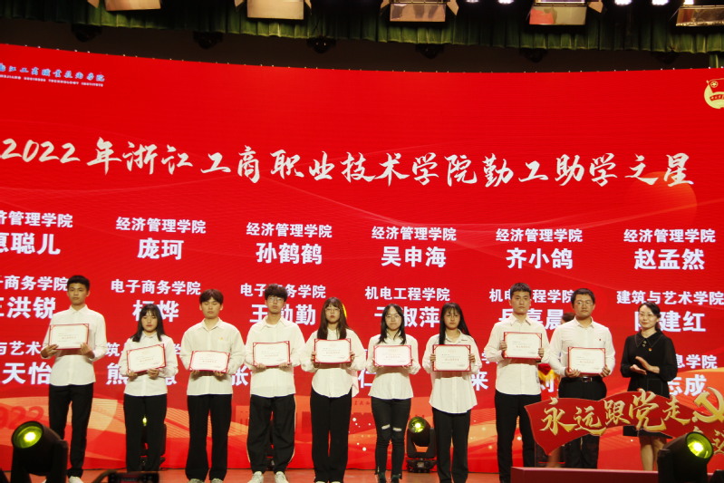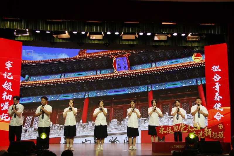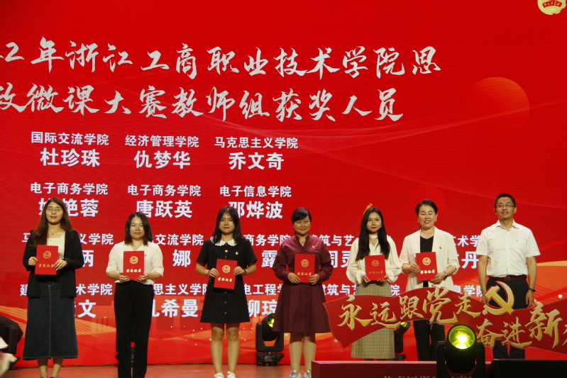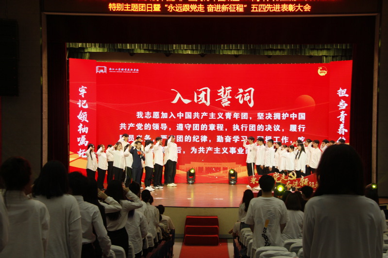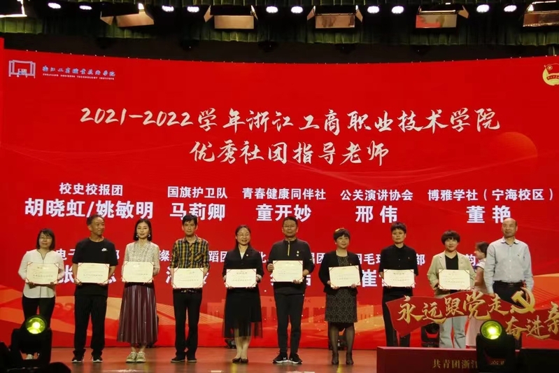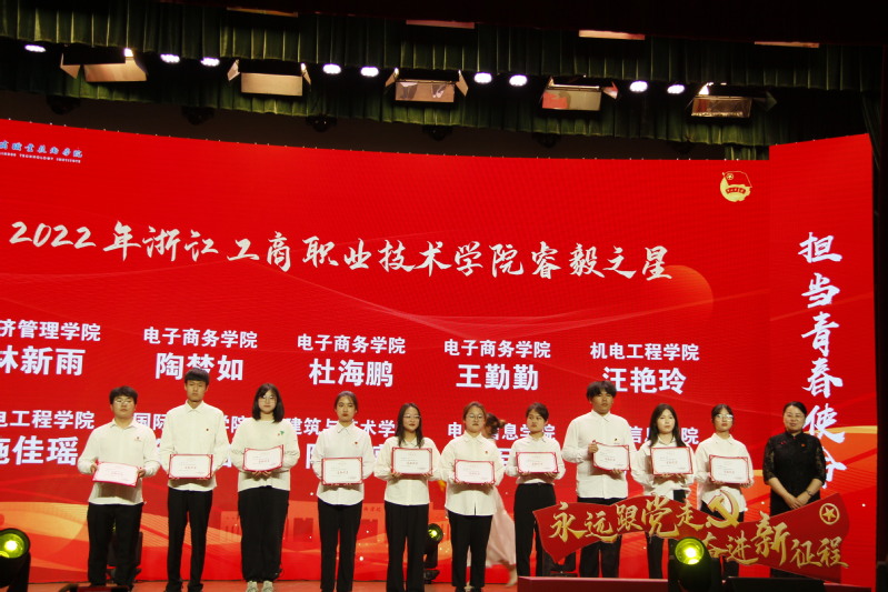 重唤入团初心,再燃拼搏激情。团员青年们高举右拳,在鲜艳的团旗下庄严宣誓,铿锵有力的誓词萦绕在现场每一位观众耳畔,展现了广大团员青年不忘初心跟党走、牢记使命勇担当的青春风采。在随后举行的颁奖仪式上,陈仕俊、俞位增、谢骏,以及办公室、宣传部、学生工作部、团委负责人,各学院党总支(副)书记先后为为2021-2022学年宁波市成绩突出共青团员、2020年度浙江省交通投资集团有限公司“优秀共青团干部”、校优秀社团指导老师校思政微课大赛获奖师生等颁奖。