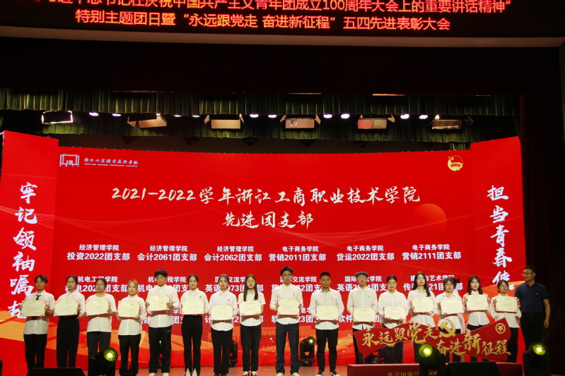 在青春激昂的团歌声中,我校“学习习近平总书记在庆祝中国共产主义青年团成立100周年大会上的重要讲话精神”特别主题团日暨“永远跟党走 奋进新征程”五四先进表彰大会结束。校团委将进一步深入开展“学习习近平总书记在庆祝中国共产主义青年团成立100周年大会上的重要讲话精神”主题教育活动,新时代的青年也将以习近平新时代中国特色社会主义思想武装头脑,秉承红船精神、五四精神、浙江精神、工商精神,立大志、明大德、成大才、担大任,厚植爱党、爱国、爱校情怀,在新起点新征程上推动共青团事业守正创新,续写新时代工商青年的精彩篇章,为祖国的美好未来添砖加瓦!