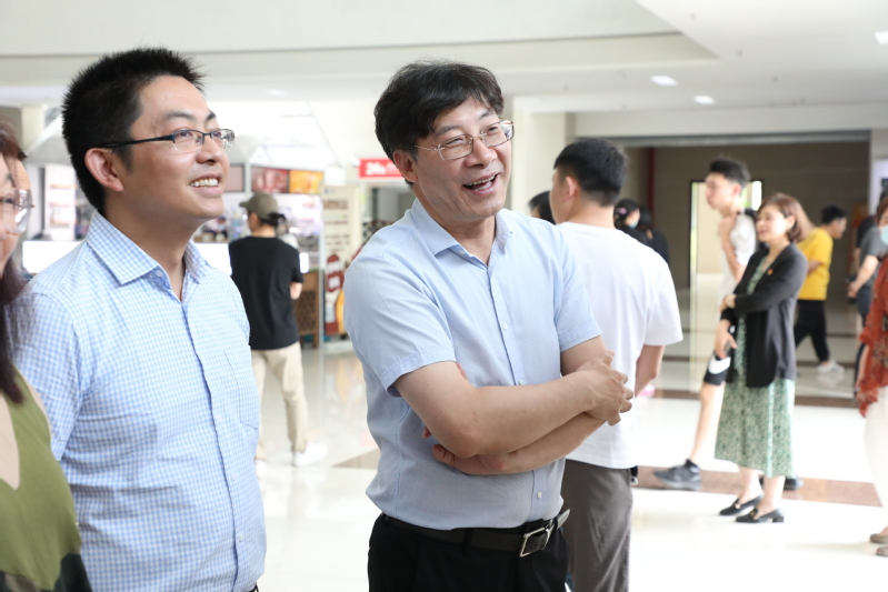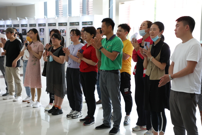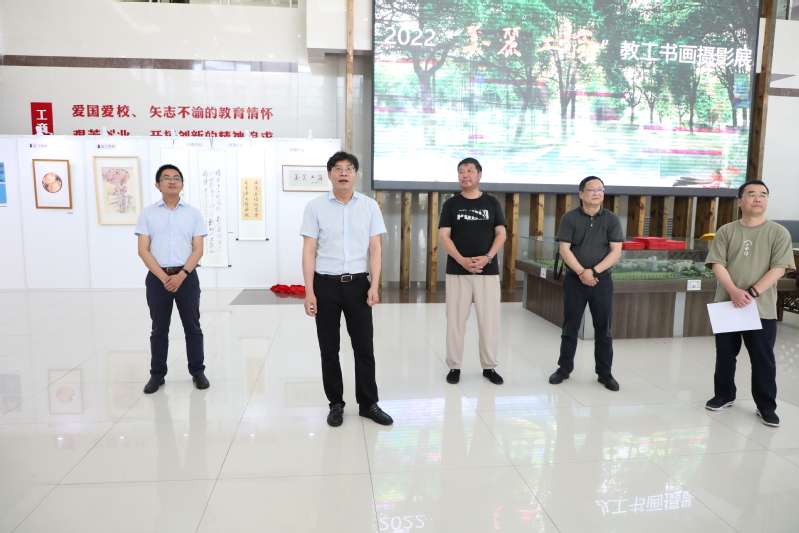 活动伊始,陈仕俊、谢骏共同为由陈书记亲笔题写的《美丽工商》主题作品揭幕。随后,陈仕俊发表了满怀激情的讲话。他说,本次参展作品内容广泛,涵盖了“双高”校建设、疫情防控、校园生活等各个方面,充分体现了学校浓郁的文化艺术氛围。广大教职工通过摄影、书法、绘画等多种形式将“工商文化”、“工商精神”得以展现,这是百年工商的文化沉淀,更是“工商精神”的升华。他希望,通过这项活动将“工商文化”接续传递,在陶冶情操的同时,激发广大教职工工作干劲,营造奋发向上的校园氛围。
