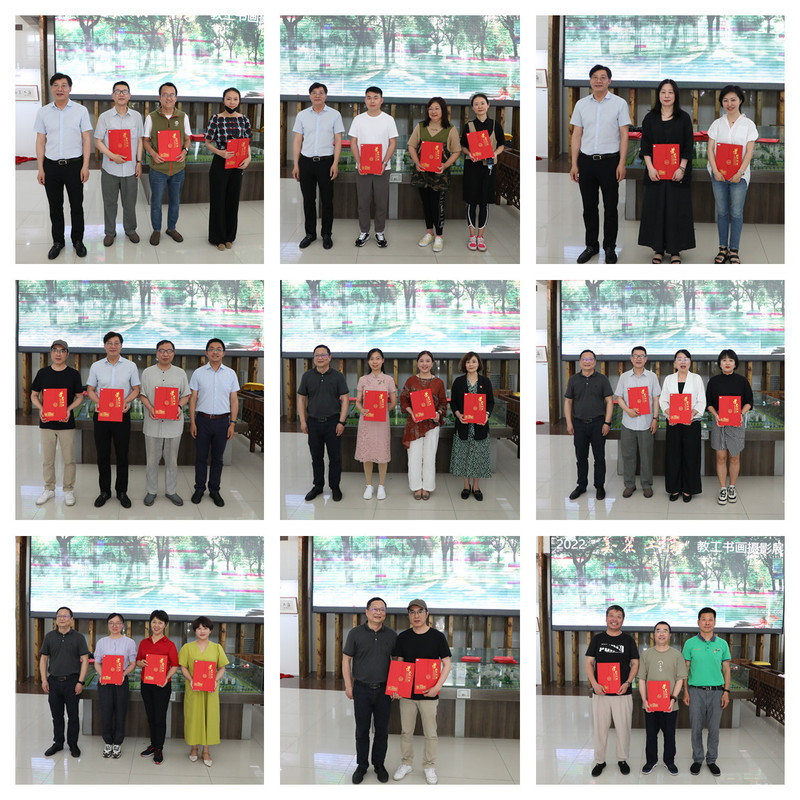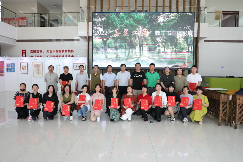 最后,陈仕俊、应晓清为获得书画、摄影一等奖、二等奖、三等奖、优秀奖的获奖人员代表颁发了证书;谢骏、工会副主席韩包海为获得书画、摄影特别奖的获奖人员颁发了证书。到场教职工在参展作品前驻足观赏,细心品味,感受着现场浓浓的艺术氛围。
