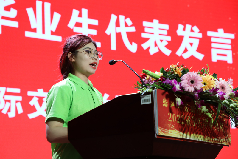 毕业班班主任建筑与艺术学院张竞文寄语毕业生们要忠于自己的职责,勇敢地踏向属于自己的人生征程,在实现中国梦的伟大实践中创造自己的精彩人生。毕业生代表国际交流学院李琳用“沉淀、热爱、感恩”六字总结自己三年来的收获,希望能和同学们一起秉承母校校训,不负韶华,一路高歌,扬帆起航。