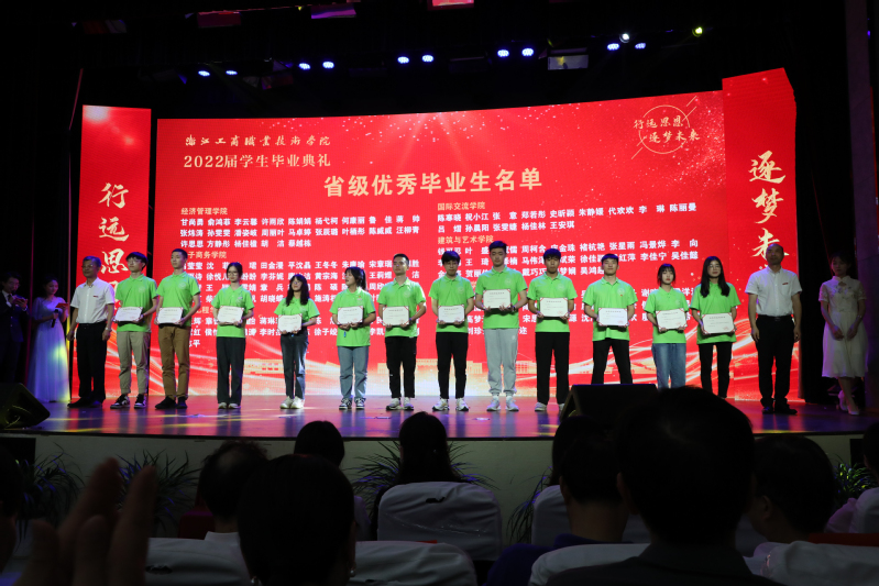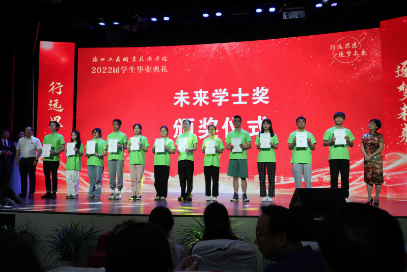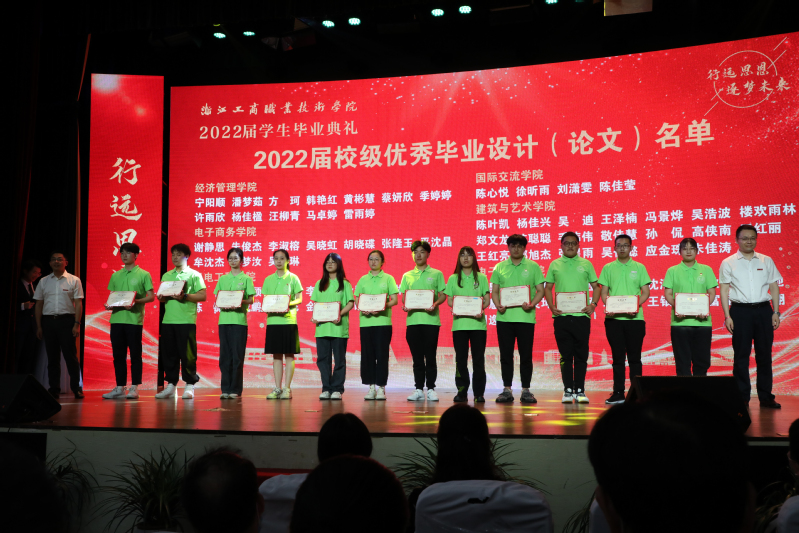 周志春为毕业生代表颁发毕业证书。省级优秀毕业生、未来学士奖、校级优秀毕业论文获奖代表纷纷上台领奖。