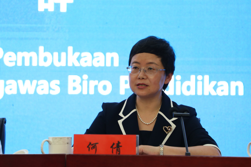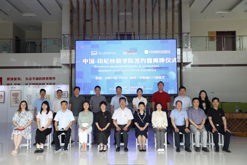 何倩作签约仪式致辞,希望我校在丝路学院建设过程中,积极主动为“走出去”企业提供更好的服务和更优的支持,联合印尼政府、企业等共同开发教育资源,深度参与行业标准、职业标准、技能标准制定等工作,推动形成更多务实合作成果,让中印丝路学院成为宁波对外交流的一张金字名片,为促进中印人文交流,助力高质量推进“一带一路”建设贡献更多力量。