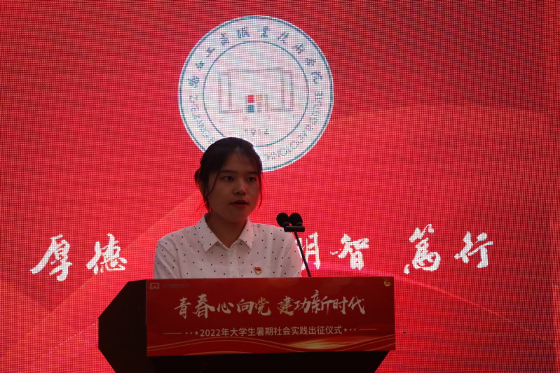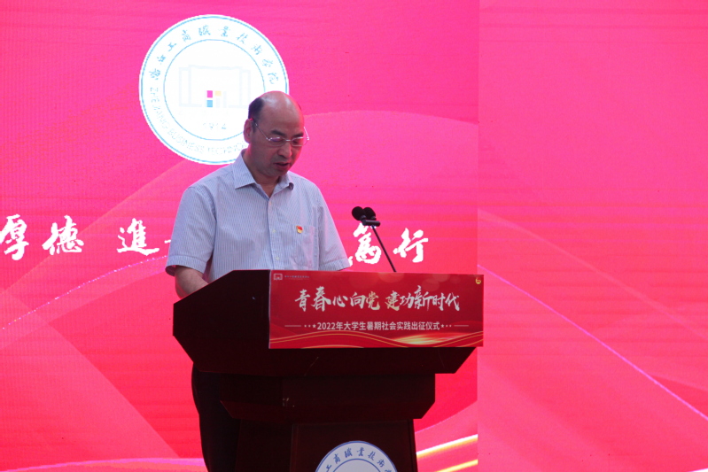 6月23日下午,我校“青春心向党 建功新时代”2022年暑期社会实践出征仪式在中和楼217举行。党委副书记俞位增,宣传部、学生工作部、团委、教务处、保卫处负责人或相关工作人员,各学院党总支(副)书记,全体辅导员,社会实践指导老师代表以及学生代表出席活动。