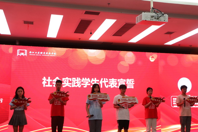 随后,俞位增为社会实践指导老师颁发聘书。电子商务学院姚艳蓉代表社会实践指导老师发言,分享了她的暑期社会实践工作经验和感悟。社会实践学生代表上台宣誓,他们将坚定理想信念,弘扬工商精神,牢记安全第一,恪守实践纪律,培育和践行社会主义核心价值观,以青春担当争取岗位建功,以青年风采奏响时代强音,以青春之我、奋斗之我谱写新时代的青春之歌。相关部门负责人、各学院党总支(副)书记等为即将出征的团队授旗。