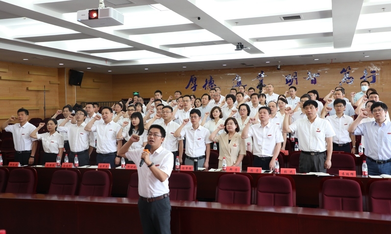 党委委员、工会主席、组织部(统战部)部长谢骏带领全体中层干部进行了任职宣誓,新任中层干部高举右拳,发出铮铮誓言,庄严的完成了工商学院发展历史上的首次干部“履新宣誓”仪式。