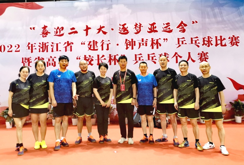 7月6日至9日,由浙江省教育工会、浙江省钟声体育协会主办的2022年浙江省“建行·钟声杯”乒乓球比赛暨省高校“校长杯”乒乓球个人赛在丽水市体育中心莲花馆举行。我校代表队在工会常务副主席韩包海的带领下,共派出9名运动员参赛。经过激烈角逐,我校在高校组混合团体赛中勇夺小组第3,郑发泰老师获教授组男子第8名的好成绩。
