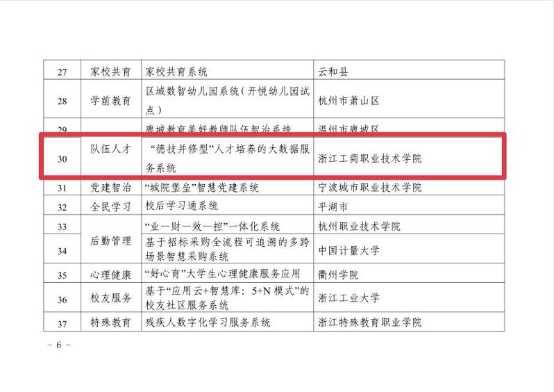 近日,浙江省教育厅下发了2022年教育领域数字化改革创新试点项目名单,我校申报的“‘德技并修型’人才培养的大数据服务系统”获批立项。