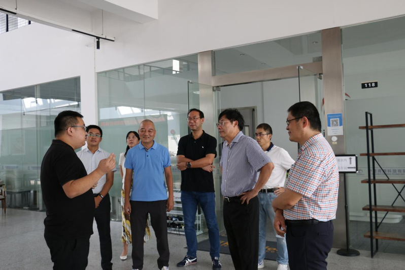 陈仕俊、谢骏一行在宁波旷世控股有限公司董事长金建新陪同下,饶有兴致地参观了宁波旷世智源工艺设计有限公司产品展厅和园区入驻企业宁波青灏科技有限公司、宁波芳香码头生物科技有限公司,了解了园区的基本产业状况、运营现状、主导产业及未来规划等情况。