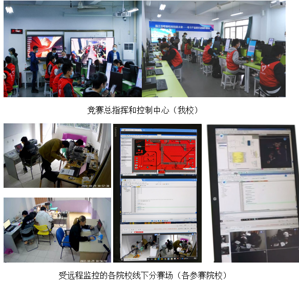 受疫情影响,结合竞赛的特点和防疫要求,本次竞赛开创性地采用“一个中心、多点辐射”的“线上+线下”模式开展,即以我校为“竞赛总指挥和控制中心”全程采用视频监控、电脑远程控制、远程视频评测等“线上”方式,各个参赛队在各自独立封闭的分赛场内“线下”进行。既保证了竞赛中最重要的电子产品设计与制作等技能操作环节,又大大减少了人员聚集和流动,符合防疫要求。