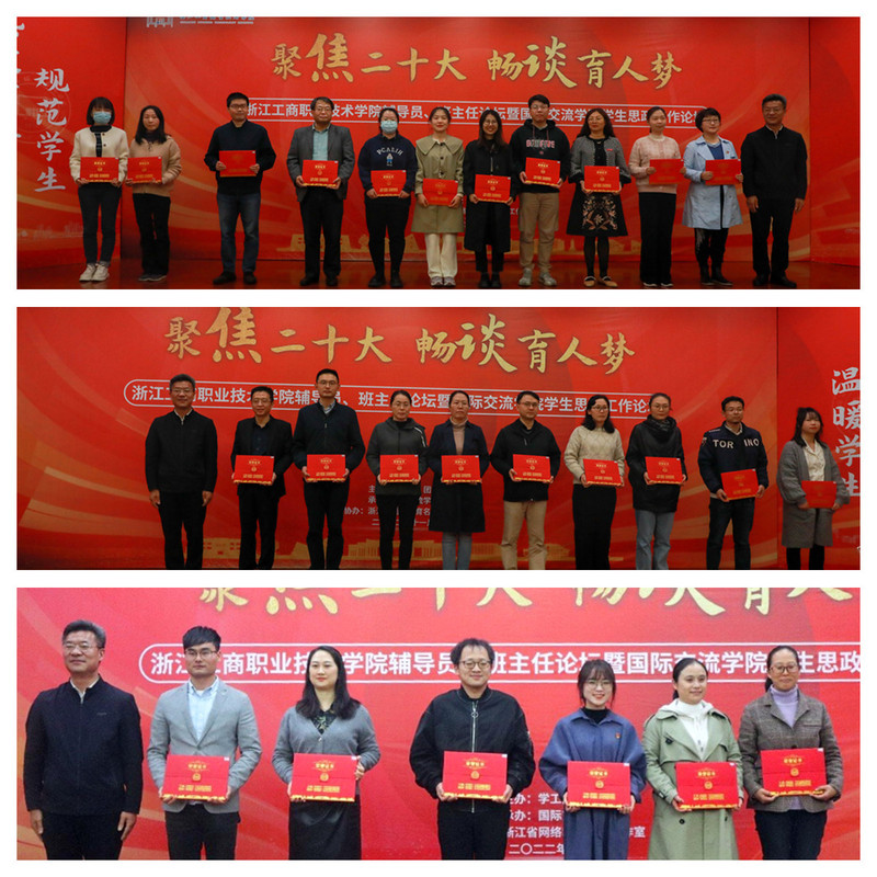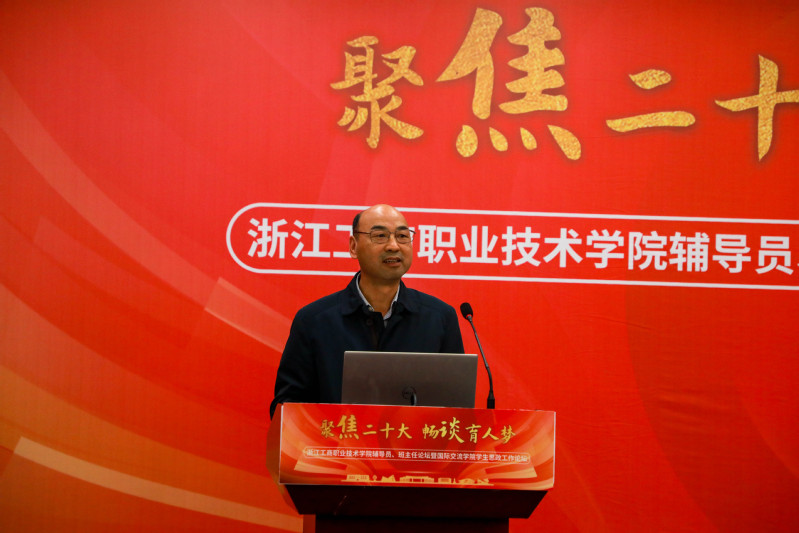 为深入贯彻党的二十大精神,高质量落实“立德树人”根本任务,11月16日下午,浙江工商职业技术学院辅导员、班主任论坛暨国际交流学院学生思政工作论坛在中和楼217报告厅成功举办。本次论坛由学工部、团委主办,国际交流学院承办,浙江省网络教育名师工作室协办。校长周志春、校党委副书记俞位增,校办、学生处、团委负责人,各二级学院党总支书记、副书记,全体辅导员、班主任代表参加此次活动。