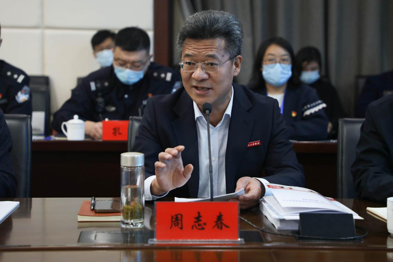 周志春从领导坚强有力,党政班子高度重视安全稳定工作,筑牢等级平安校园建设的组织基础;坚持解放思想,积极开展师生思想政治教育,筑牢等级平安校园建设的思想基础;加大财政投入,全力保障师生根本利益,筑牢等级平安校园建设的物质基础;强化队伍建设,打造工商安全稳定铁军,筑牢等级平安校园建设的人员基础和完善工作机制;确保工作到位、责任到人,筑牢等级平安校园建设的保障基础五个方面对学校近三年来等级平安校园建设工作进行了专题汇报。