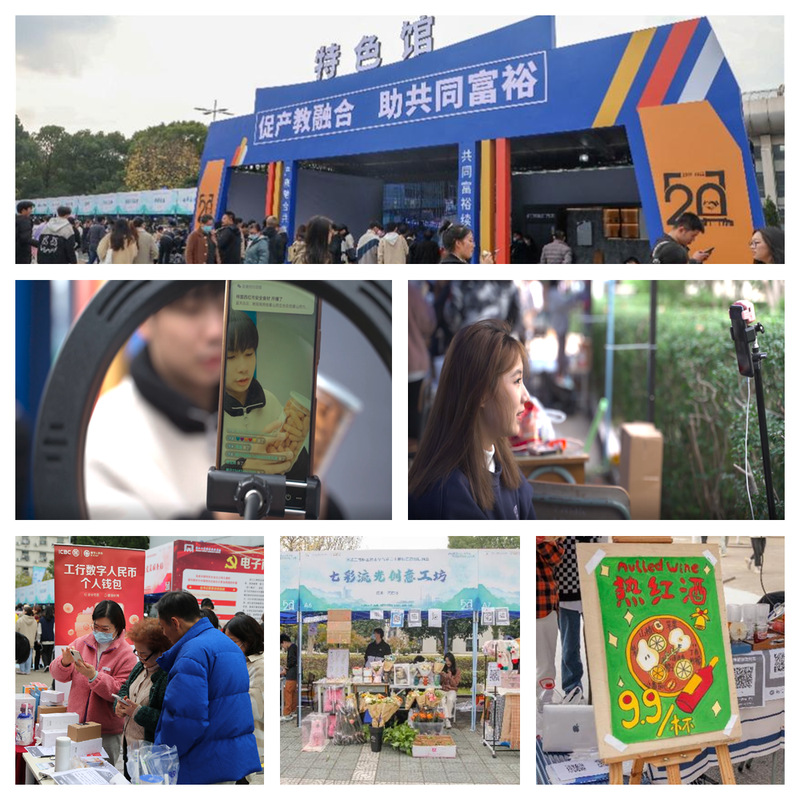 本次校园商品展销会由教务处、学工部、团委主办,电子商务学院承办,本次展会以“产教融合共谱二十华章,共同富裕续写初心答卷。”为主题,设立“共同富裕”和“产教融合”两大特色展馆和133个摊位,包含商贸风情、精品美食、专业实践、品质展销四大区域。