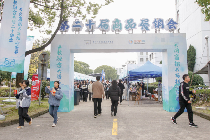 “产教融合共谱二十华章,共同富裕续写初心答卷。”学校第二十届校园商品展销会于12月7日拉开序幕。校长周志春,党委副书记俞位增,党委委员、副校长徐盈群,党委委员、工会主席、组织部(统战部)部长谢骏,以及办公室、宣传部、学工部、团委、教务处、科研处、后勤服务处等相关部门负责人、各分院院长、电子商务学院全体教工和部分学生代表出席开幕式。