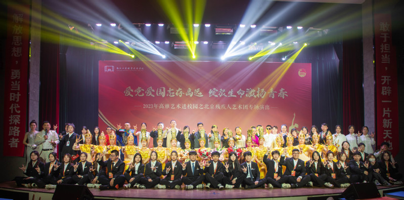 为深化学校“四爱”教育,进一步传承“百年工商精神”,促进良好校风学风建设,3月22日晚,学校“爱党爱国志存高远 绽放生命激扬青春”——2023年高雅艺术进校园之北京残疾人艺术团文艺演出在学校博学楼报告厅举行。宣传部、学工部、团委相关负责人,各学院党总支副书记,辅导员和学生代们共同观看了此次精彩的演出。同时还通过网络直播方式让更多的师生享受这一视觉盛宴,线上线下共计观看达5000多人次。此次活动是一次中国红色艺术与残障艺术的传承,是一次民族文化与残障艺术的融合。