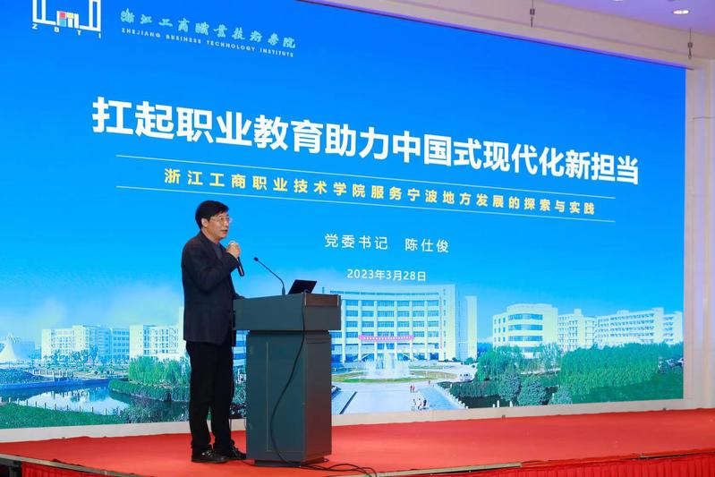 3月28日,以“大力发展适应新技术和产业变革需要的职业教育”为主题的宁波市职业教育学会2023年工作会议暨“职业教育高质量发展”论坛顺利召开,我校党委书记陈仕俊应邀出席并在大会上作经验交流。宁波市教育局副局长王飞、宁波市职业教育学会会长沈剑光等领导出席论坛。