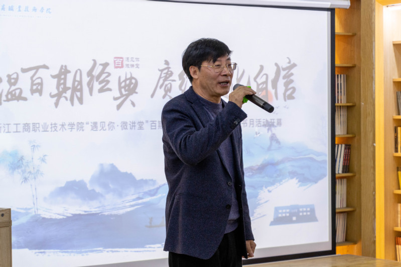 宁波市新华书店总经理王嫩华先生作为图书馆合作伙伴及学校优秀校友的双重身份发表了热情洋溢的讲话,他总结了双方自合作以来取得的可喜成绩,并对微讲堂开讲满百期表示祝贺。