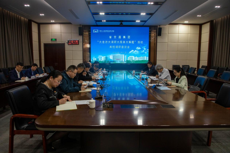 4月21日,省交通集团党委副书记陈敏来校开展“大走访大调研大服务大解题”活动,集团组织部、人力资源部副部长邓娴颖、党委工作部部长助理彭杰陪同调研,在校的学校领导班子成员及职能部门、二级学院党总支负责人代表参加座谈会。