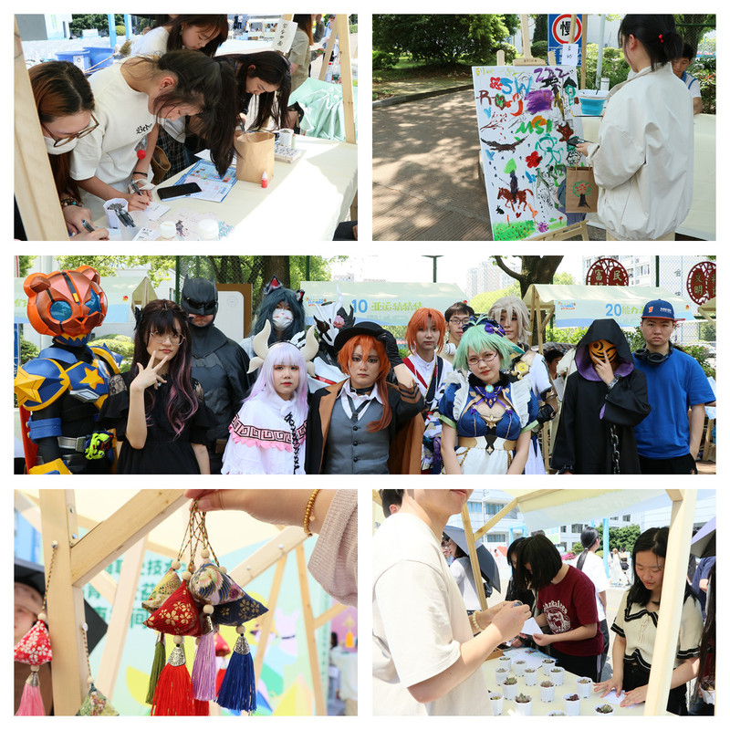本次社团文化青春公益市集共分成四个大类:暖春拾趣集·摊玩计划、FUN肆亚运集·乐享运动、春日灵感集·遇见美好、有氧生活集·唤醒时光,共设有26个摊位,开展了各类深受学子欢迎的活动。参与游玩的师生还可凭借集卡章数来到集卡终点站兑换相应奖励,现场青春飞扬、其乐融融。