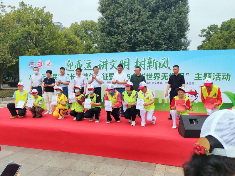 为引领文明新风尚,不断锤炼专业的城管义工队伍,2023年5月31日上午10时,2023年宁波市城市管理“民间路长”聘任出征暨第36个“世界无烟日”主题活动在宁波市北仑区北仑中心公园顺利举行,市文明办副主任陶俊宣布出征,市综合行政执法局党组副书记、副局长郑传统发布动员令,百余位义工代表来到现场,我校4名优秀志愿者代表受邀参加,用一场集中拉练式志愿服务,开启新一轮文明创建专项行动。