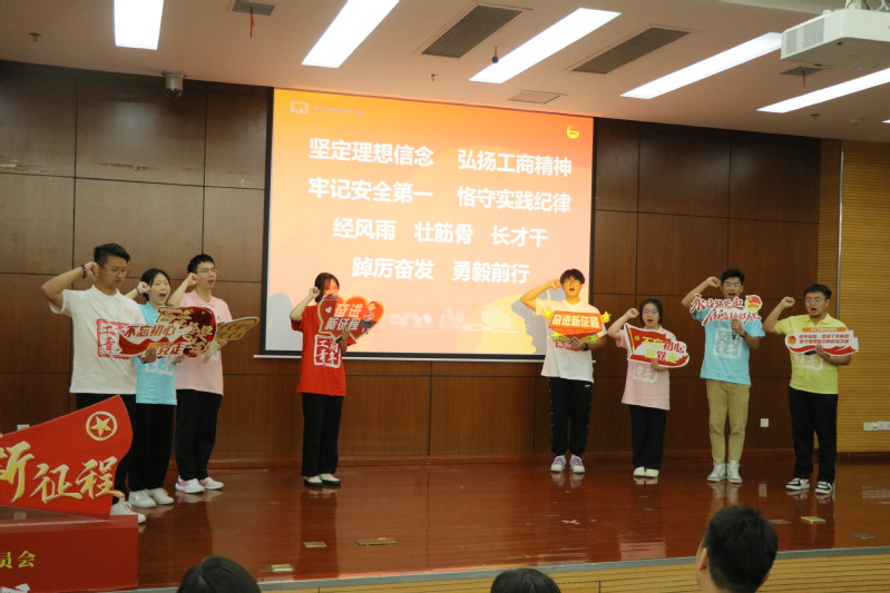 七位学生代表上台发出出征誓言,并带领全体同学激情宣誓:坚定理想信念,传承工商精神,牢记安全第一,恪守实践纪律,以青春之我、奋斗之我谱写新时代的青春之歌!