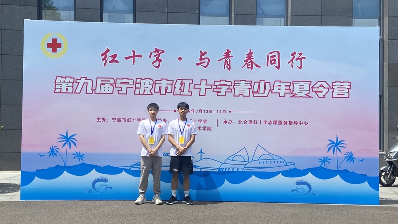 此外,我校红十字会工作近期又添喜讯。由宁波市红十字会主办,北仑区红十字会、宁波职业技术学院协办,北仑区红十字志愿服务指导中心承办的第九届宁波市红十字青少年夏令营活动在宁波职业技术学院举行。我校学生会部门负责人、反邪教社会实践团队代表项锋炜和朱佳俊两位同学参加本次夏令营集训活动,先后参与了“团队破冰”、应急救护培训、户外生存技能培训、幼儿园志愿服务、参观张人亚党章学堂以及红色观影等各项活动,收获颇丰,并以优秀的成绩结营。