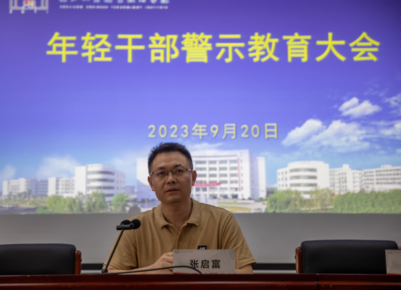 为学习贯彻习近平总书记关于加强年轻干部教育管理监督的重要论述,进一步增强年轻党员干部廉洁自律意识,根据集团纪委工作部署,学校于2023年9月20日下午在中和楼217会议室召开年轻干部(40周岁以下全体教职工)警示教育大会。校纪委书记张启富出席会议,会议由纪委办公室主任袁腾辉主持。