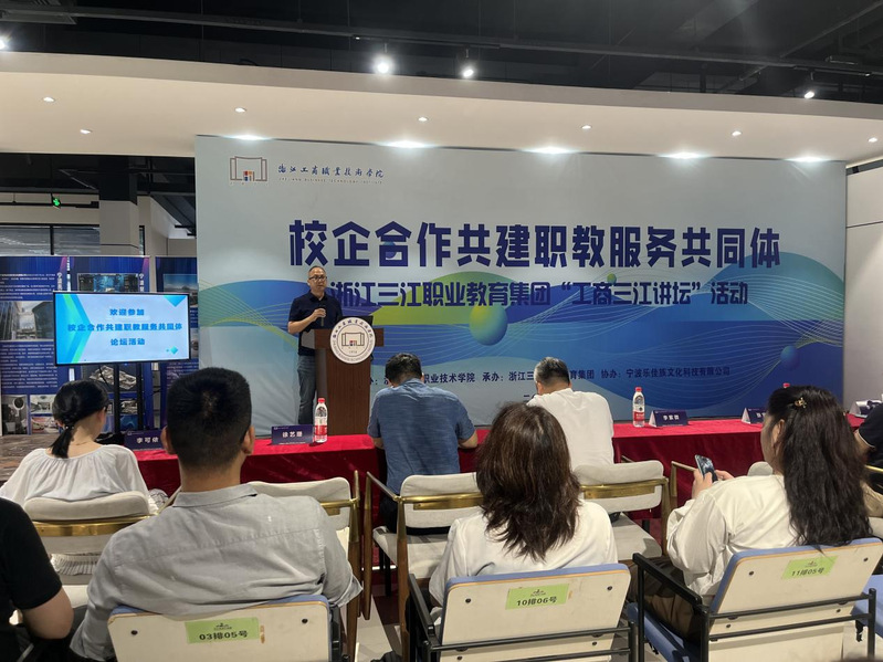 近日,浙江三江职业教育集团开展“工商三江讲坛”活动。本次论坛由我校主办,宁波乐佳族文化科技有限公司协办,吸引了众多高职院校、中专院校和行业企业代表参加,共同探讨校企合作共建职教服务共同体。