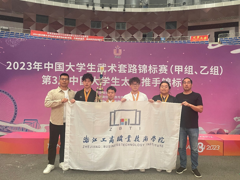 10月5—11日,我校武术代表队参加了在天津市武清区举行的2023全国大学生武术套路锦标赛、第3届全国大学生太极推手锦标赛,在体育军事教研室主任王涛老师以及教练马振浩老师的带领下,代表队成员们充分发扬敢于拼搏的“工商精神”,经过激烈的角逐与对抗,最终获得太极推手男子60kg、62kg级别冠军、女子70kg以上级别亚军,武术套路太极拳、太极剑亚军,太极推手团体第三名的优异成绩。