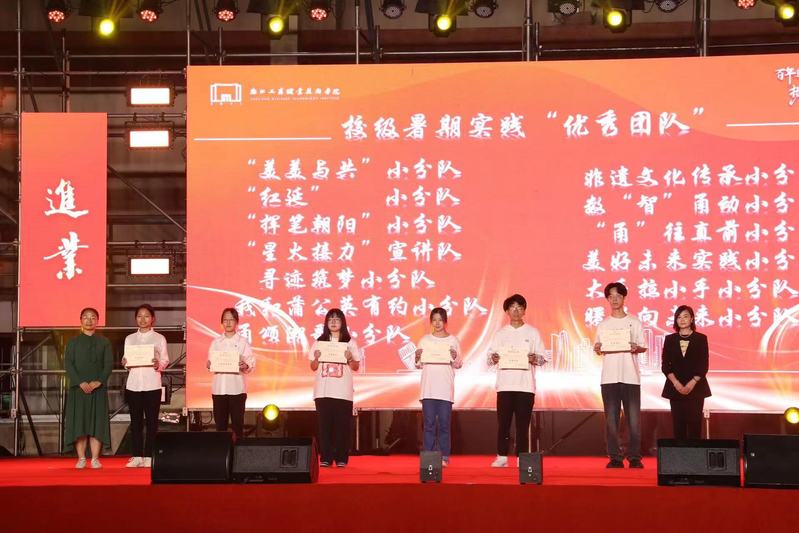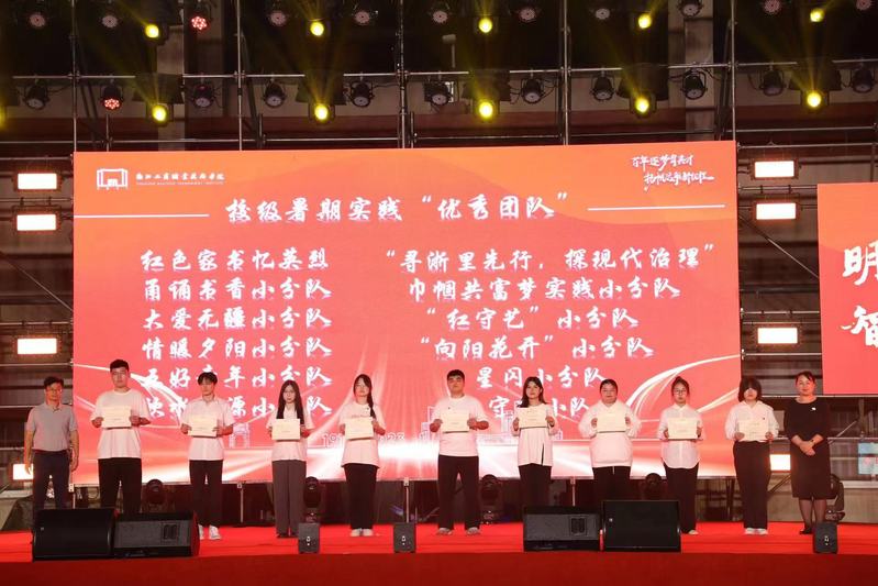 在晚会中还对2023年暑期社会实践省、市、校级优秀团队和个人进行了隆重的表彰,校领导以及各职能部门负责人分别为他们颁奖。