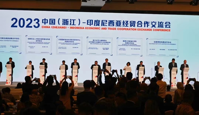 11月14日,2023中国(浙江)-印度尼西亚经贸合作交流会在印度尼西亚首都雅加达举行。在此次洽谈会上,浙江省与印度尼西亚之间的一系列重点合作项目,其中包括我校与印度尼西亚梅库布亚纳大学共建“直播与传媒海外学院”项目签约仪式,标志着宁波高职院校在国际合作教育领域迈出了坚实的一步。