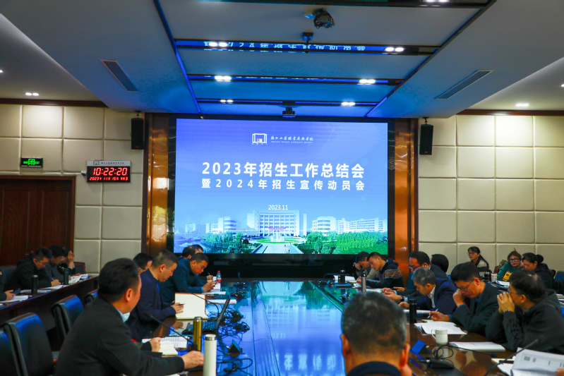 2023年11月15日,学校2023年招生工作总结会暨2024年招生宣传动员会在至诚楼111会议室召开,校长周志春、副校长徐盈群、学校招生工作领导小组成员、各二级学院中层领导、全体专业主任和年度招生先进代表出席会议。