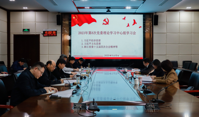 2023年11月15日下午,浙江省交通投资集团党委委员、工会主席柴云妹一行来我校,对我校第8次党委理论学习中心组学习进行巡听。本次会议专题学习习近平经济思想、习近平文化思想,以及浙江省委十五届四次全会精神,全体在校的校领导、相关部门负责人以及经济管理学院经济学课程教师参加。会议由校党委书记陈仕俊主持。