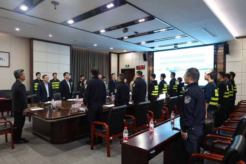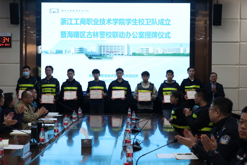成立仪式结束后,为共同维护校园及周边环境秩序,确保学校师生安全,构筑平安和谐校园,海曙区古林派出所和学校共建海曙区古林警校联动办公室并制定了《浙江工商职业技术学院警校联动安全管理规定》,周志春、贺芃共同为警校联动办公室设立揭牌。