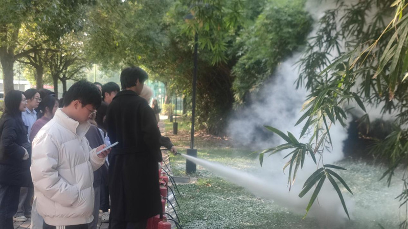 为做好本次宣传教育活动,保卫处抽调了专职消防员组成骨干班,专项负责普及培训,对灭火器的使用情景进行了简要的解释说明,重点对生活常用的干粉灭火器的步骤“提”“拔”“握”“压”等要诀的讲解,使同学们了解在火灾初期如何快速有效扑灭火情。讲解完毕后,再辅以干粉灭火器灭火练习,通过实际操作,使同学们更准确了掌握了消防基础知识和技能。