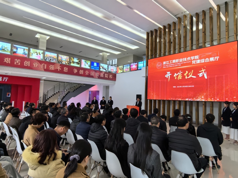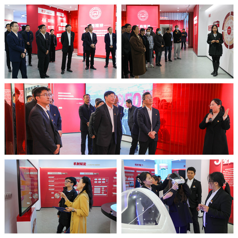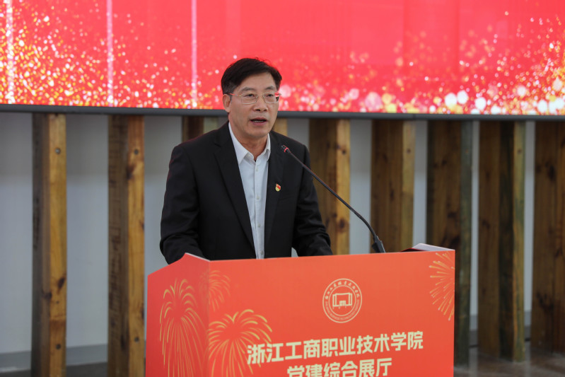 陈仕俊在讲话中指出,“党建综合展厅”的建成启用,是学校贯彻落实新时代党的建设总要求的重要举措,也是全面落实立德树人根本任务、展示党建统领学校高质量发展成果的重要窗口,对学校的发展意义重大。“党建综合展厅”作为学校党建引领高地、办学展示阵地、思政教育场地和廉政教育基地,它与校史陈列馆、党群服务中心在中和楼一楼连成一片,可以“一站式”全面展示百年工商“过去、现在和未来”,这有利于扩大学校的影响力,有利于丰富校园党建文化氛围,有利于开展党性教育、思政教育和廉政教育。