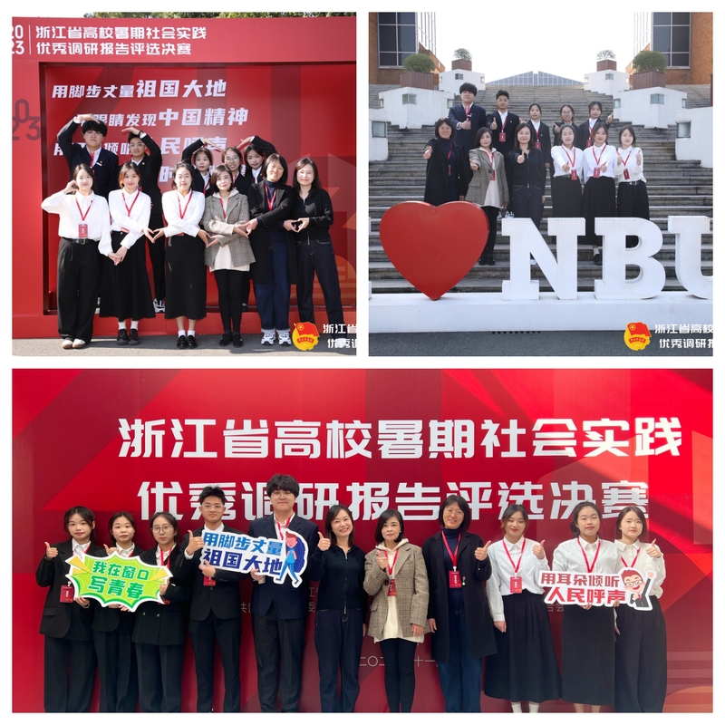 近日,由中共浙江省委宣传部、浙江省文明办、浙江省教育厅、共青团浙江省委、浙江省关爱下一代工作委员会、浙江省学生联合会联合主办的2023年浙江省首届高校暑期社会实践优秀调研报告评选决赛在宁波大学圆满结束。我校共有4支队伍过关斩将、突出重围,最终荣获一等奖2项,二等奖1项,三等奖1项,在社会实践领域取得了新的成绩。