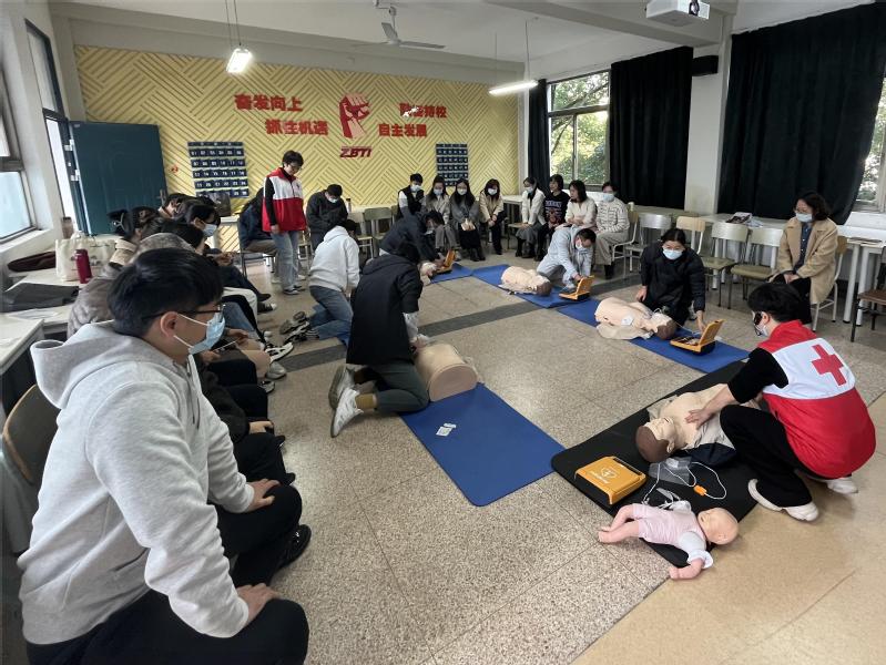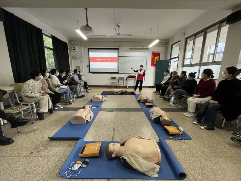 在第一天的培训中,救护培训讲师带领辅导员(班主任)了解了心肺复苏的基本原理和操作方法,并讲授了如何判断患者是否需要心肺复苏、如何正确实施胸外按压、人工呼吸等关键步骤。同时,培训讲师还详细讲解了自动体外除颤器的使用方法,包括如何正确判断患者情况、如何快速连接电极片、如何调整除颤器等。