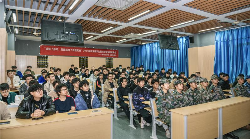 据悉,2024年上半年征兵政策咨询宣传活动分为两个板块,第一个板块是分别在本部和宁海校区开展主题为“选择了参军,就是选择了优质就业”2024届毕业班学生征兵政策专场宣讲会,分别由征兵工作站老师和“红肩章”宣讲团成员担任主讲,多方位、多角度为同学们详细介绍了征兵时间、应征入伍条件、征集对象、应征入伍流程以及大学生士兵的优惠政策和优抚政策,并通过退役大学生分享军旅故事、入伍案例深度分析了毕业班生参军入伍的优势和征兵政策的变化规律,活动主要让学生了解大学生征兵政策和流程,鼓励有志青年学生积极参军报国,实现从军报效祖国的人生价值。