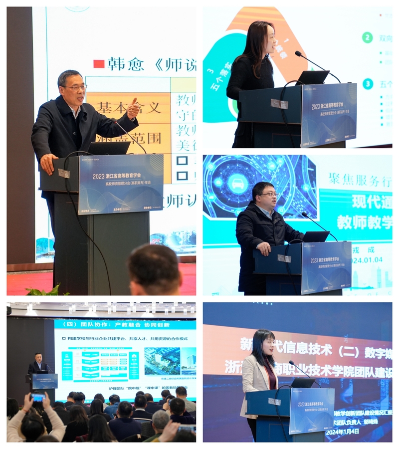 浙江省高等教育学会高校师资管理分会(高职高专)副秘书长郦解放就高校师德师风建设的成效、问题与对策作专题报告。金华职业技术学院副院长董晓晨、浙江建设职业技术学院人事处处长徐丹、浙江交通职业技术学院国家级教师创新团队负责人戎成、浙江工商职业技术学院国家级教师创新团队负责人邬琦姝先后作团队建设经验分享。