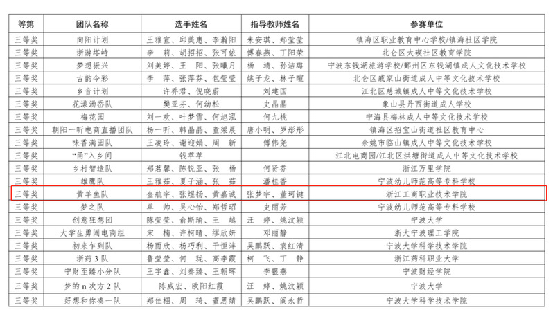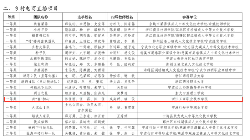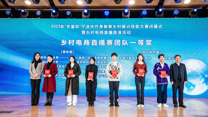 日前,由市教育局、市商务局、市农业农村局、宁波日报社联合主办的2023年“共富杯”宁波市终身教育乡村振兴技能大赛圆满结束,我校在本次大赛乡村电商直播项目中表现优异,共“富”初心队荣获高校组一等奖,超能陆战队和黄羊鱼队分别获得高校组二等奖、三等奖。
