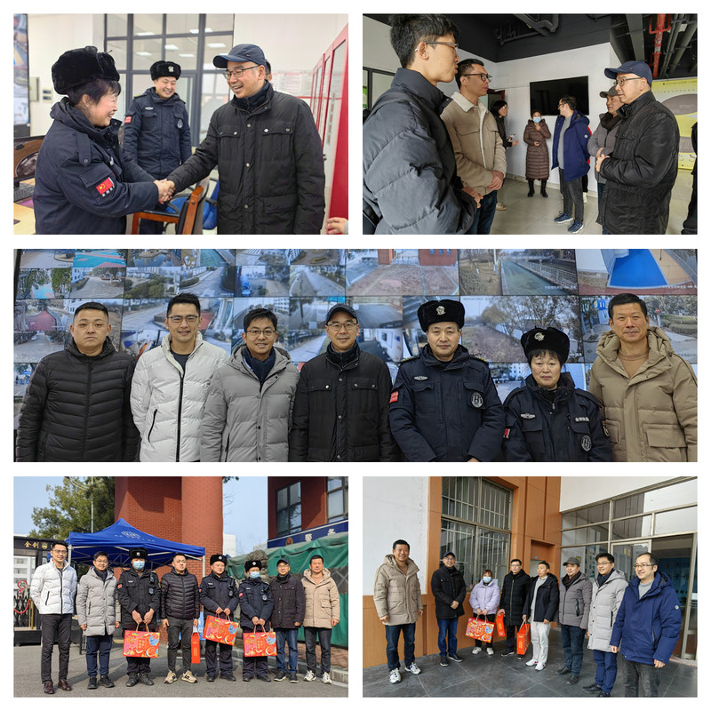 史习明、谢骏一行先后来到东门岗、消控室、信息中心、维修部、物业部、西门岗、配电房、12号学生宿舍楼及校办等地,详细了解了校园监控、网络、电力等设备运行及在校生等情况,仔细询问了在岗人员的工作生活状况,并一一送上节日慰问品及新春祝福。同时,要求在岗职工进一步提高安全防范意识,确保春节期间校园安全稳定和正常运转,让广大教职工度过一个欢乐祥和的春节。